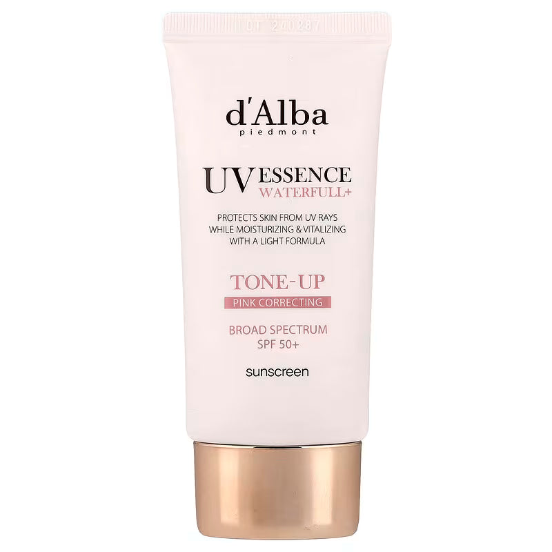 d’Alba Waterfull Tone Up: The d’Alba Waterfull Pink Correcting Tone-Up Sunscreen SPF50+ PA++++ is a refreshing vegan sunscreen that protects against UV rays while instantly brightening skin with a natural pink tone-up effect.